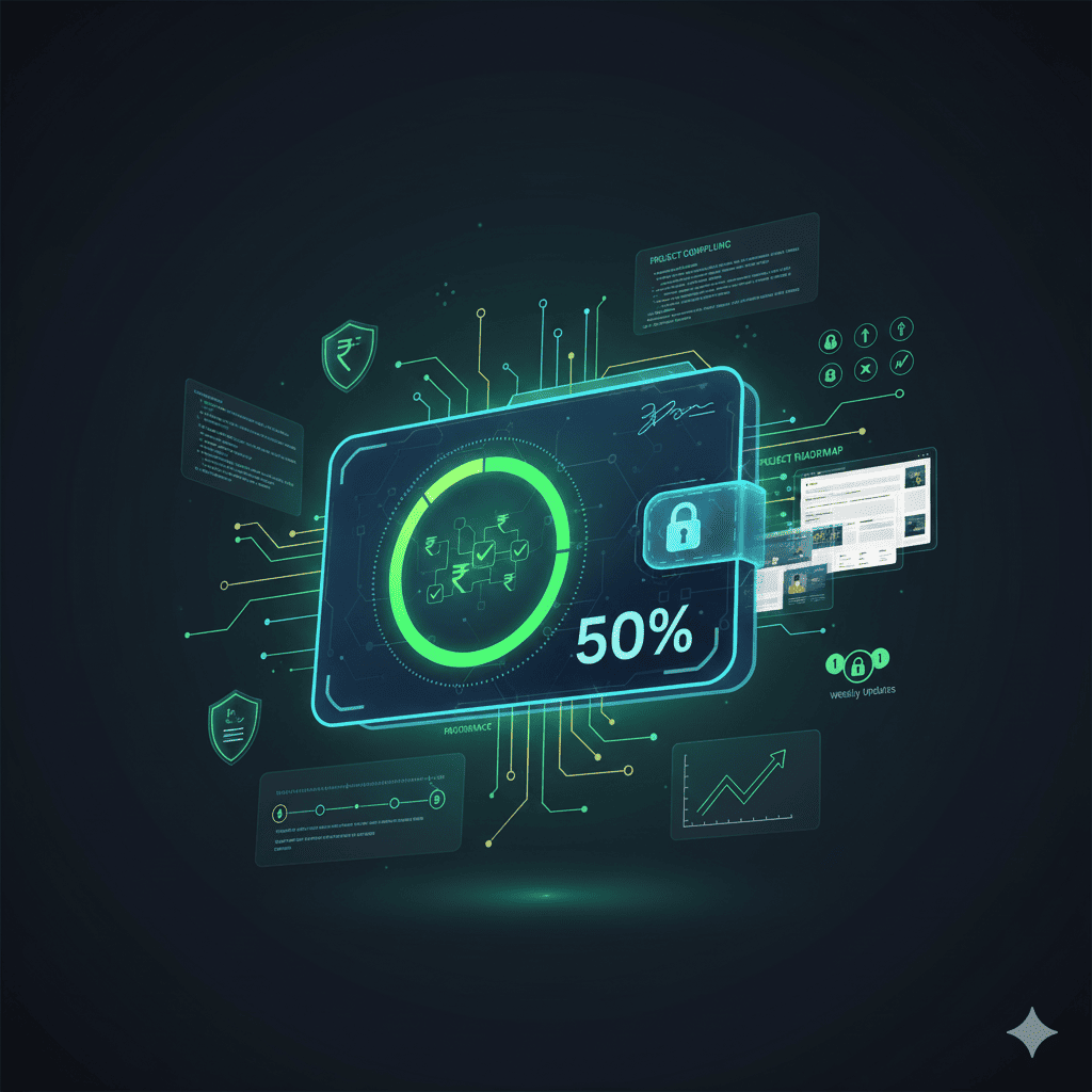 Projects are quoted as fixed-price milestones based on scope (e.g., basic Shopify theme: ₹15,000-₹80,000). Hourly rates apply for ongoing maintenance or SEO retainers starting at ₹10,000/month.